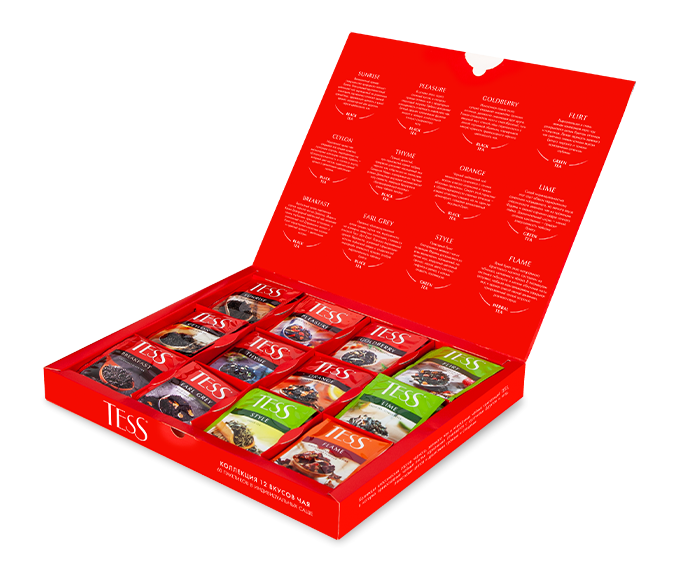 En la colección de bolsitas de té TESS encontrarás toda la variedad de tés negros y verdes clásicos y exquisitas composiciones de té, en las que hojas de té de alta calidad se combinan armoniosamente con frutas naturales, bayas, pétalos de flores y hierbas aromáticas.