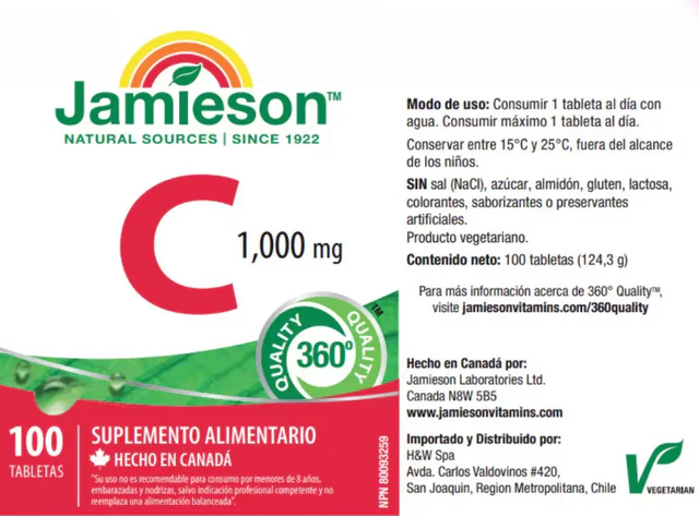 Vitamina C 1000mg, 100 tabletas Jamieson